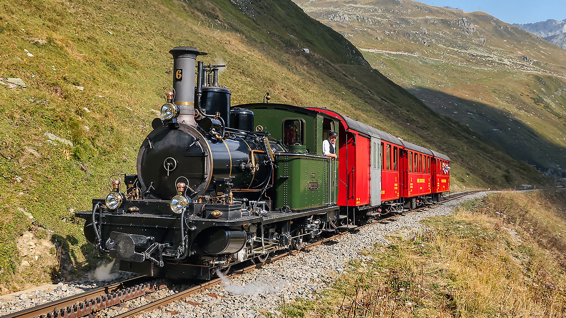 Erleben Sie eine unvergessliche Dampfbahnfahrt auf der Furka-Bergstrecke zwischen Realp, Gletsch und Oberwald. Reisen Sie in der 1. oder 2. Klasse mit der historischen Dampfbahn durch eine eindrucksvolle hochalpine Landschaft und geniessen Sie Bahnerlebnis, Nostalgie und Panorama auf einzigartige Weise.