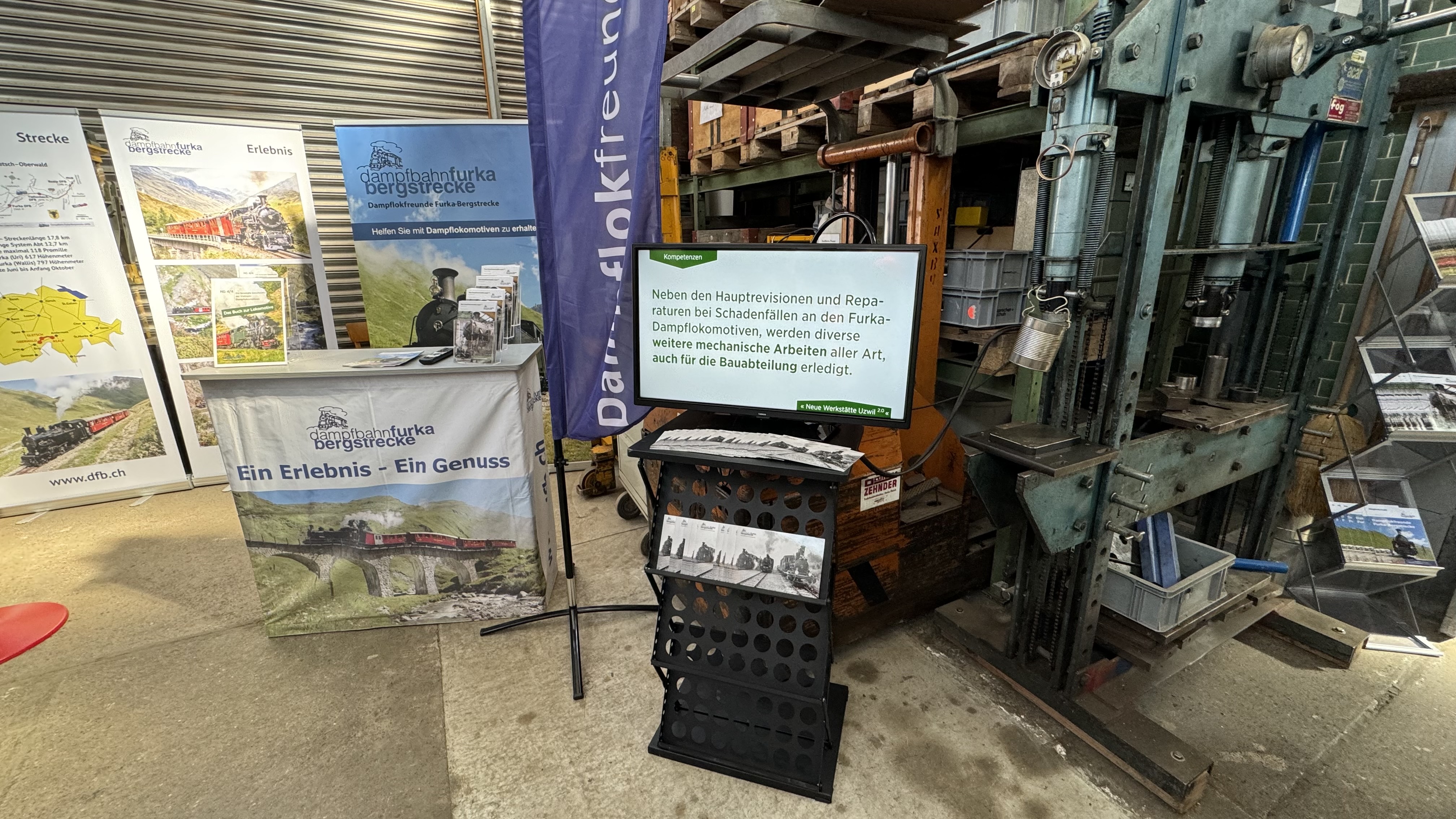 Die Dampflokfreunde genossen am diesjährigen Tag der offenen Wagenwerkstatt Gastrecht. Mit dem kleinen Werbestand wurde auf den Verein allgemein, insbesondere aber auf das Projekt "Neue Werkstätte Uzwil 2.0" aufmerksam gemacht.