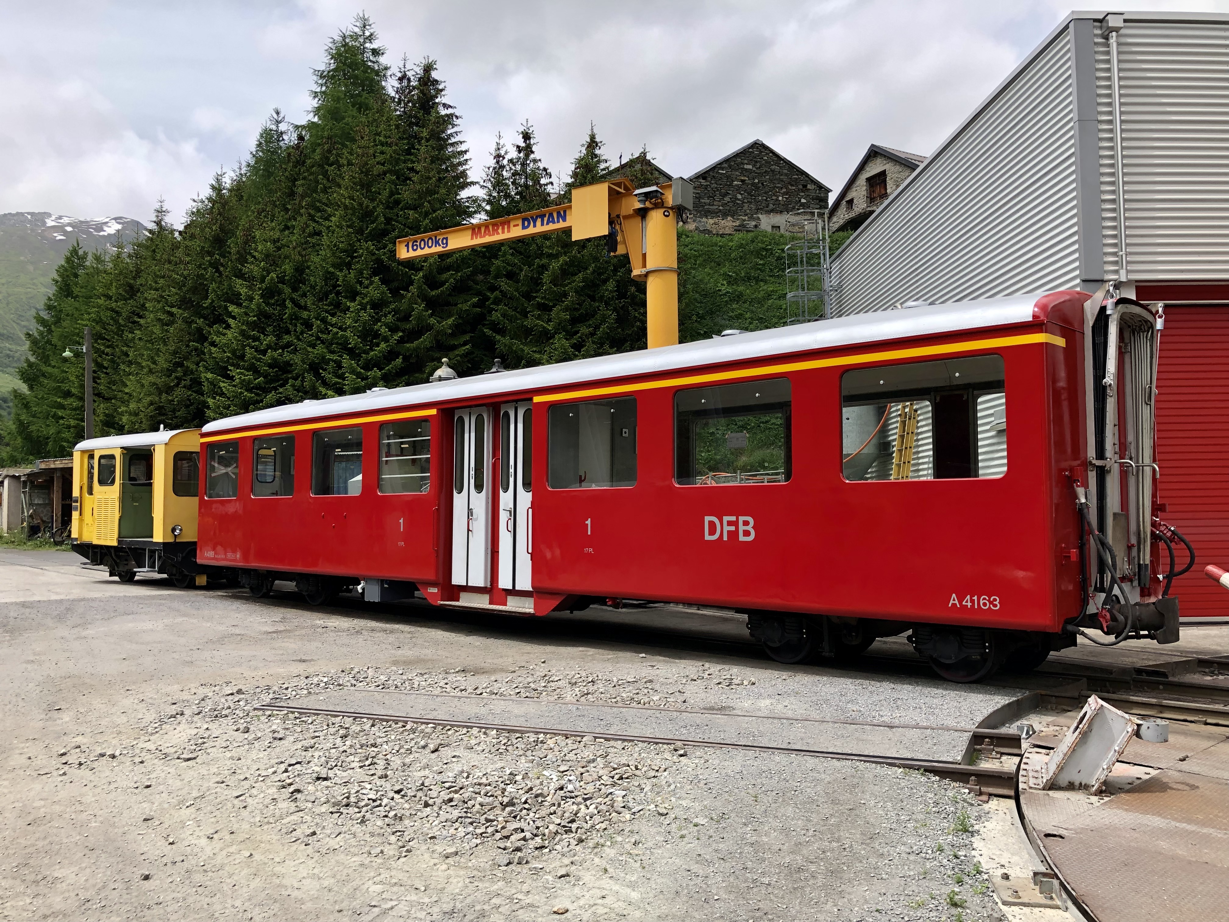 Der 2015 von der Matterhorn Gotthard Bahn übernommene Mitteleinstiegs-Wagen A 4163 wurde im Winter von der Dieselcrew mit Unterstützung durch das Ressort Wagen aufgearbeitet und ist nun einsatzbereit. Damit werden die beiden Dieselzüge «Wanderexpress» und «Abenteuer Rottenschlucht» erstklassig.