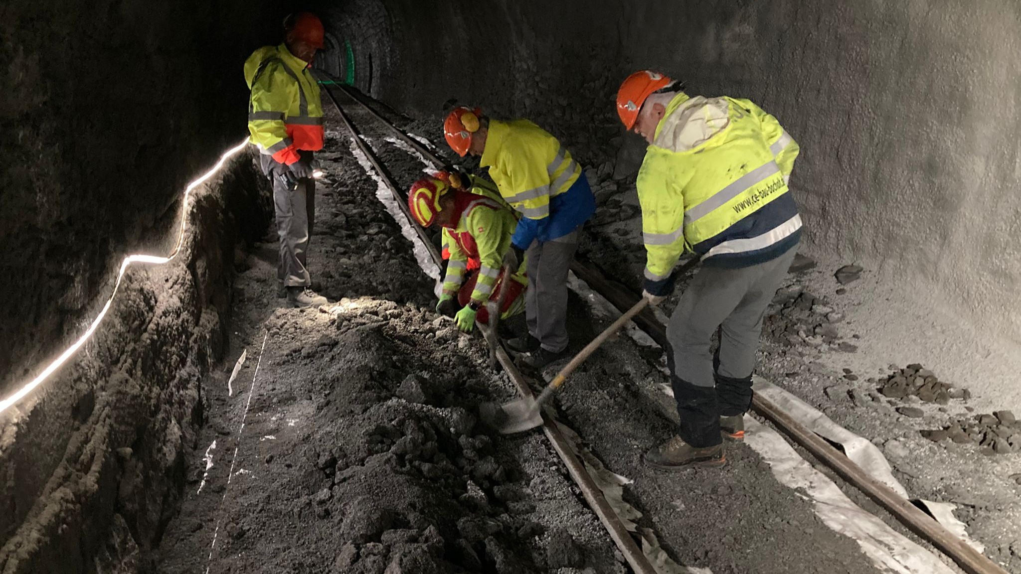 Zwei Personen begaben sich nach Gletsch. Dort musste eine Wasserleitung verlegt werden. Eine Gruppe verschob sich nach Muttbach und von dort in den Tunnel (ca. 750 -850 m), wo grosse Aufräumarbeiten zu verrichten waren. Diese beiden Arbeiten dauerten mit Unterbrüchen bis Donnerstag. Wenn im Tunnel nicht gearbeitet werden konnte wurden am Ausgang Muttbach Holzschwellen demontiert, was vor allem bis Mittwoch eine harte Arbeit war, da die Schrauben von Hand gelöst werden mussten, da dazu keine «Maschine» vorhanden war. Donnerstag und Freitag konnte diese Arbeit mit einer «Maschine» ausgeführt werden. Dies war wesentlich schneller und weniger anstrengend. Zwischen Muttbach und Gletsch waren jäten und Erlen schneiden zu erledigen. Leider haben uns Roman Odermatt und Hansjörg Waltle bereits frühzeitig verlassen, womit unsere Baugruppe noch kleiner wurde.