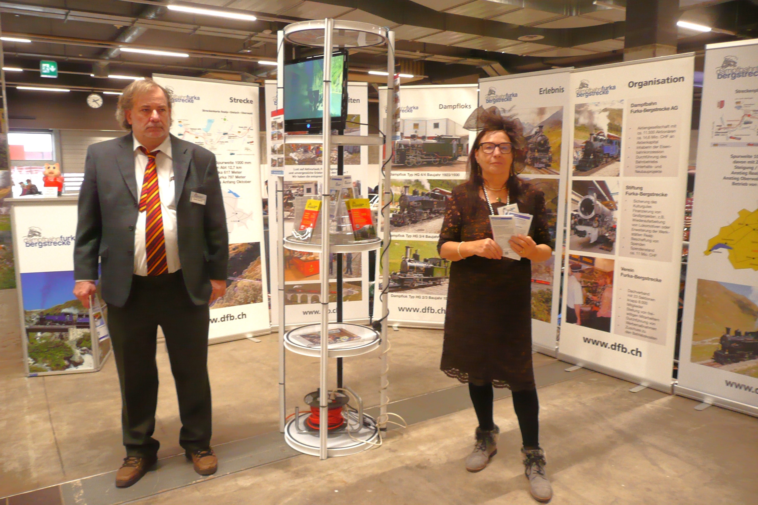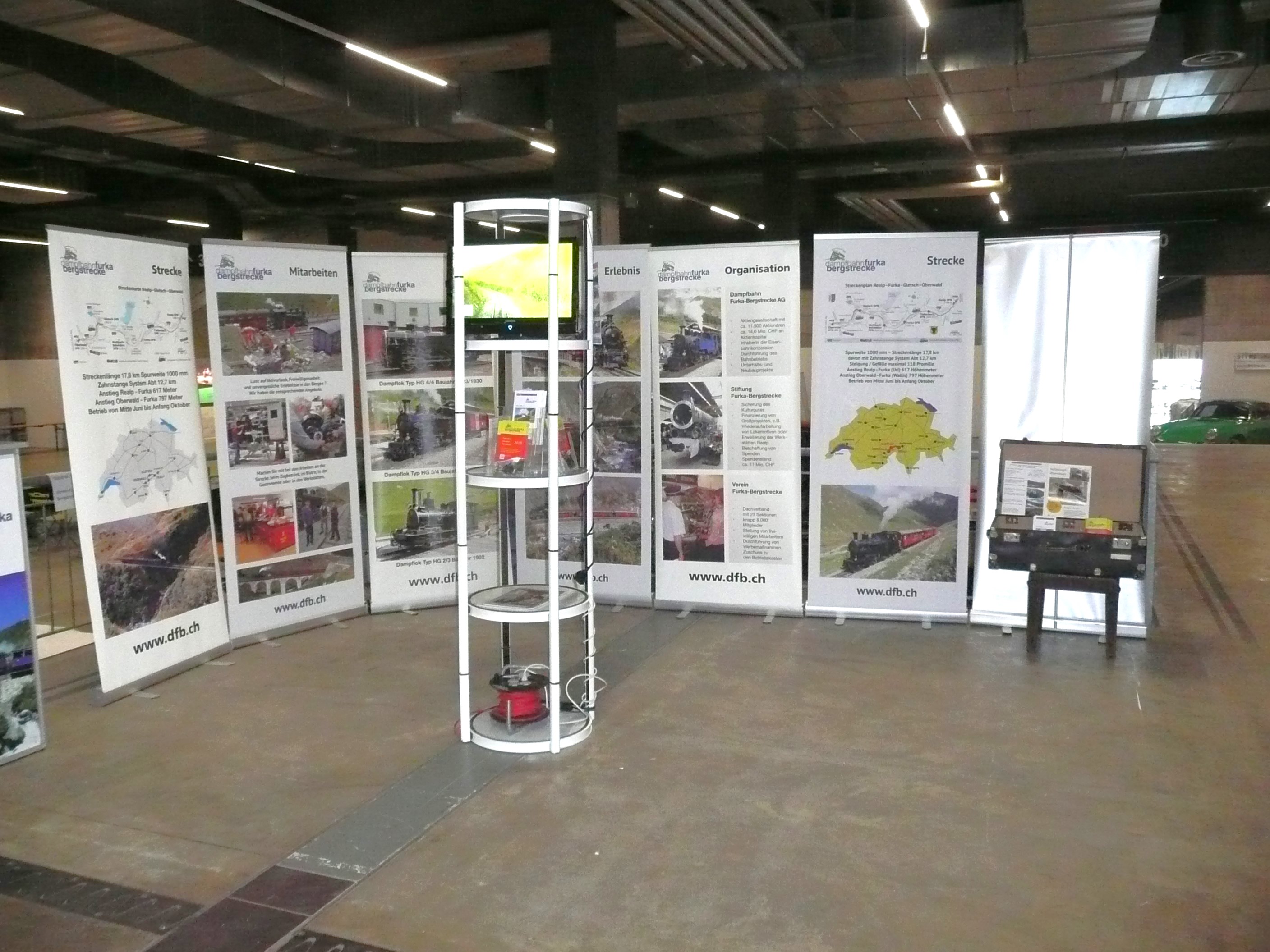 Wieso sollen sich an Oldtimerautos Interessierte nicht auch für unsere historische Dampfbahn interessieren? Diese Frage stellte sich das Werbeteam auch und nahm zum ersten Mal an der Oldtimermesse in St. Gallen teil. Dem Anlass angepasst in historischer Bekleidung brachte man den Besuchern die Dampfbahn Furka-Bergstrecke näher. Hoffen wir, dass die eine oder der andere nächstes Jahr den Weg an die Furka findet.