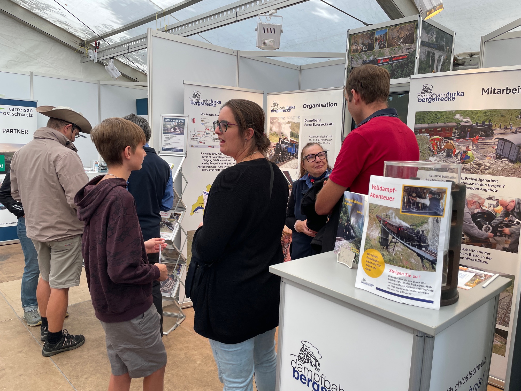 Das Werbeteam der Sektion Ostschweiz machte den vielen Besuchern aus nah und fern den Besuch bei der Furka-Bergstrecke, aber auch die Frewilligenarbeit und die Vereinsmitgliedschaft bei den Furka-Organisationen schmackhaft.