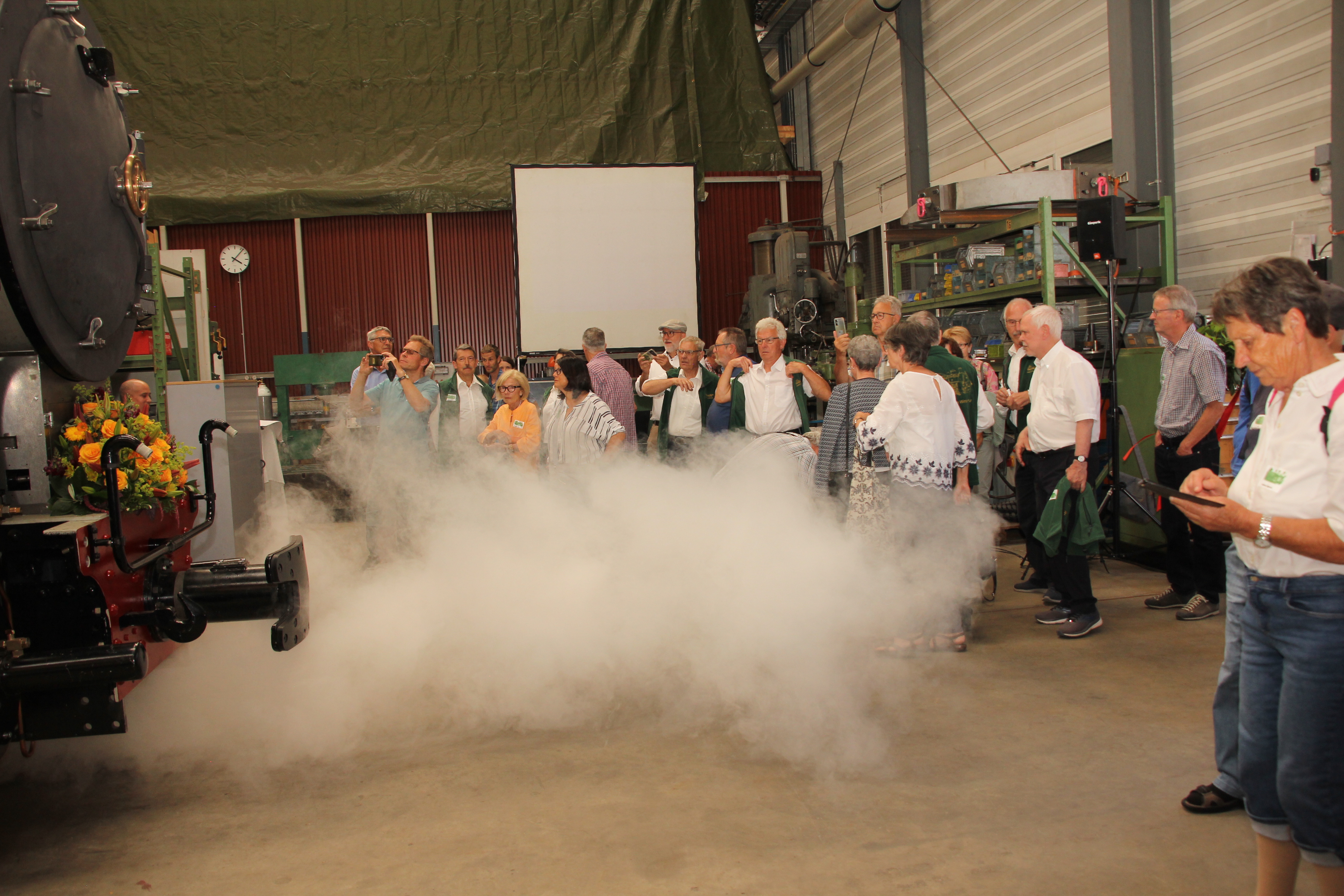 Nachdem das Tor die Sicht auf die rauchende Vierkupplermaschine freigab, begrüsste der stellvertretende Projektleiter Markus Staubli alle Anwesenden ganz herzlich in der Dampflokwerkstätte Uzwil. Während des offiziellen Aktes wurde die Lok symbolisch zur Inbetriebnahme an Walter Frech, Leiter ZfW übergeben. Dieser bedankte sich bei allen Beteiligten für den unermüdlichen Einsatz in diesem, nun 33 Jahre nach der Rückholaktion dem Ende nahenden Projekt "Aufarbeitung HG 4/4". Auch Josef Hamburger, Vertreter der Stiftung Furka-Bergstrecke dankte dem Werkstattteam und allen Sponsoren für das Gelingen dieser Revisionen.