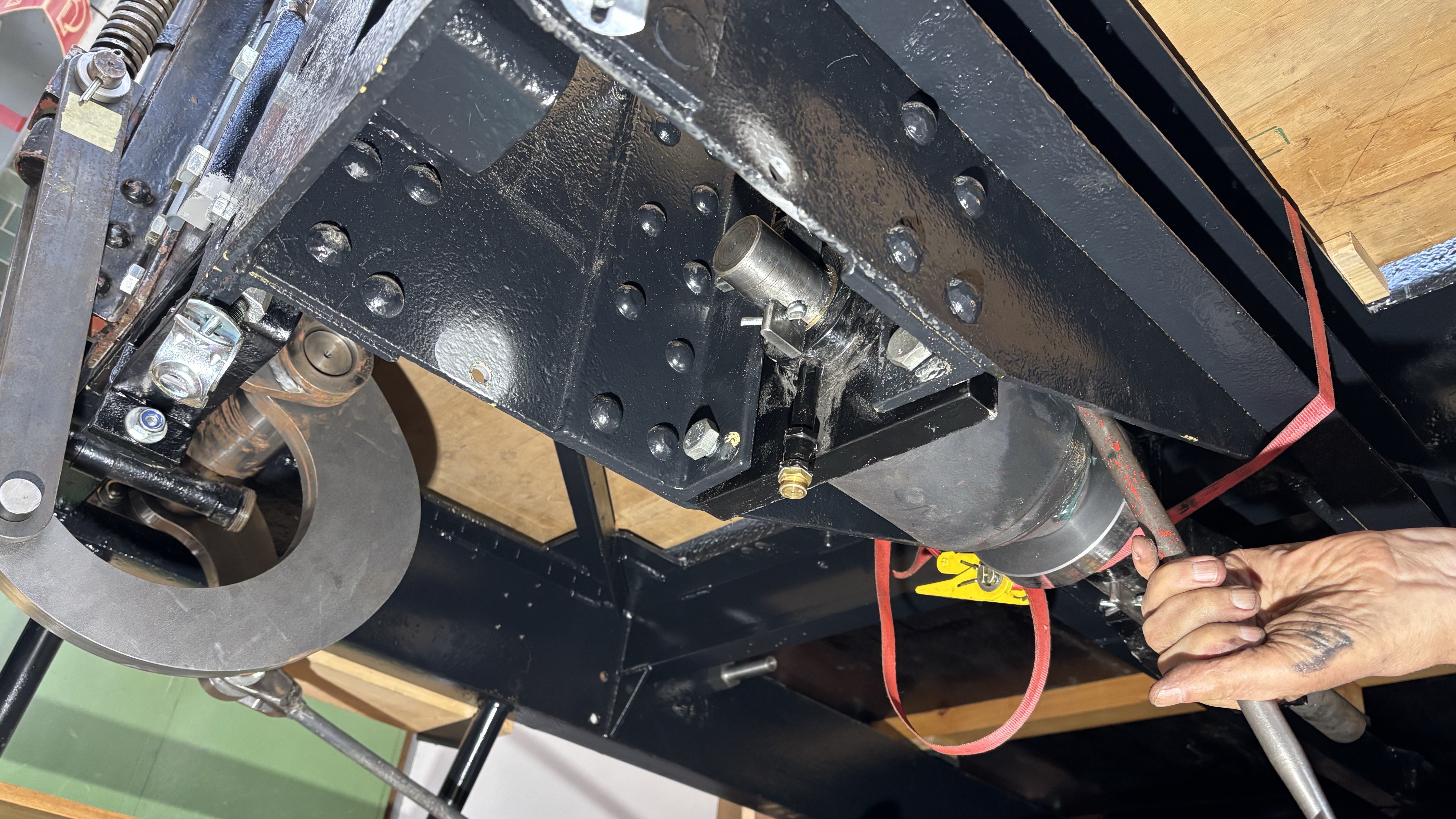 Das Federpaket für den Zughaken wurde von der Werkstatt Uzwil vorgespannt und anschließend im Wagen eingebaut.