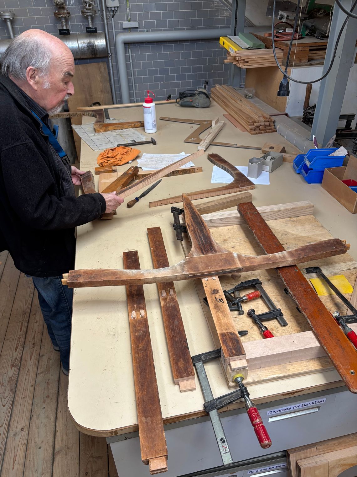 Aktuell werden für den WSB-Triebwagen Sitzbänke revidiert, resp. repariert.