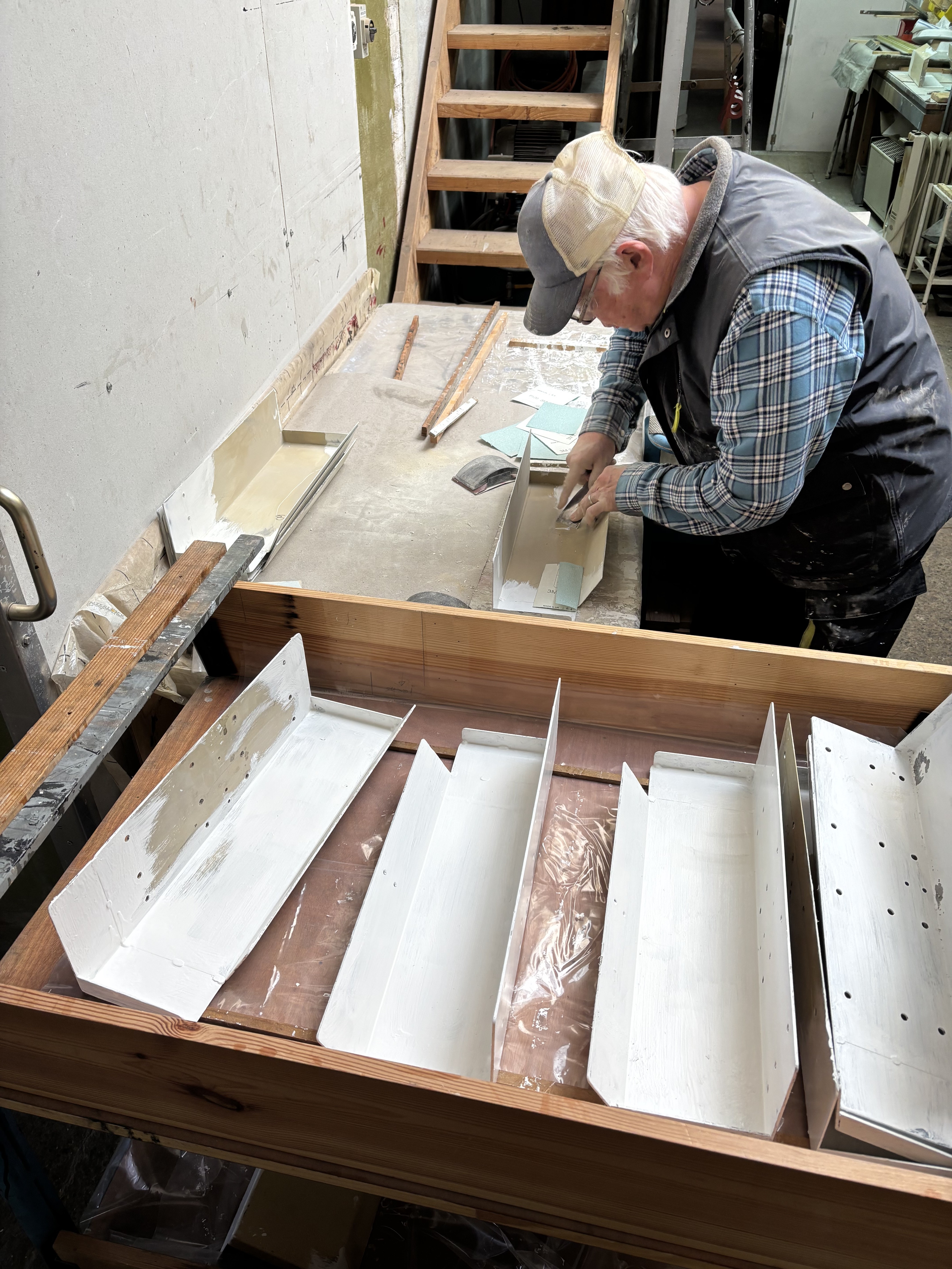 Der Umbau der Feuerlöscherschalen für alle Wagen in Realp ist soweit fortgeschritten, dass sie grundiert und gestrichen werden können.