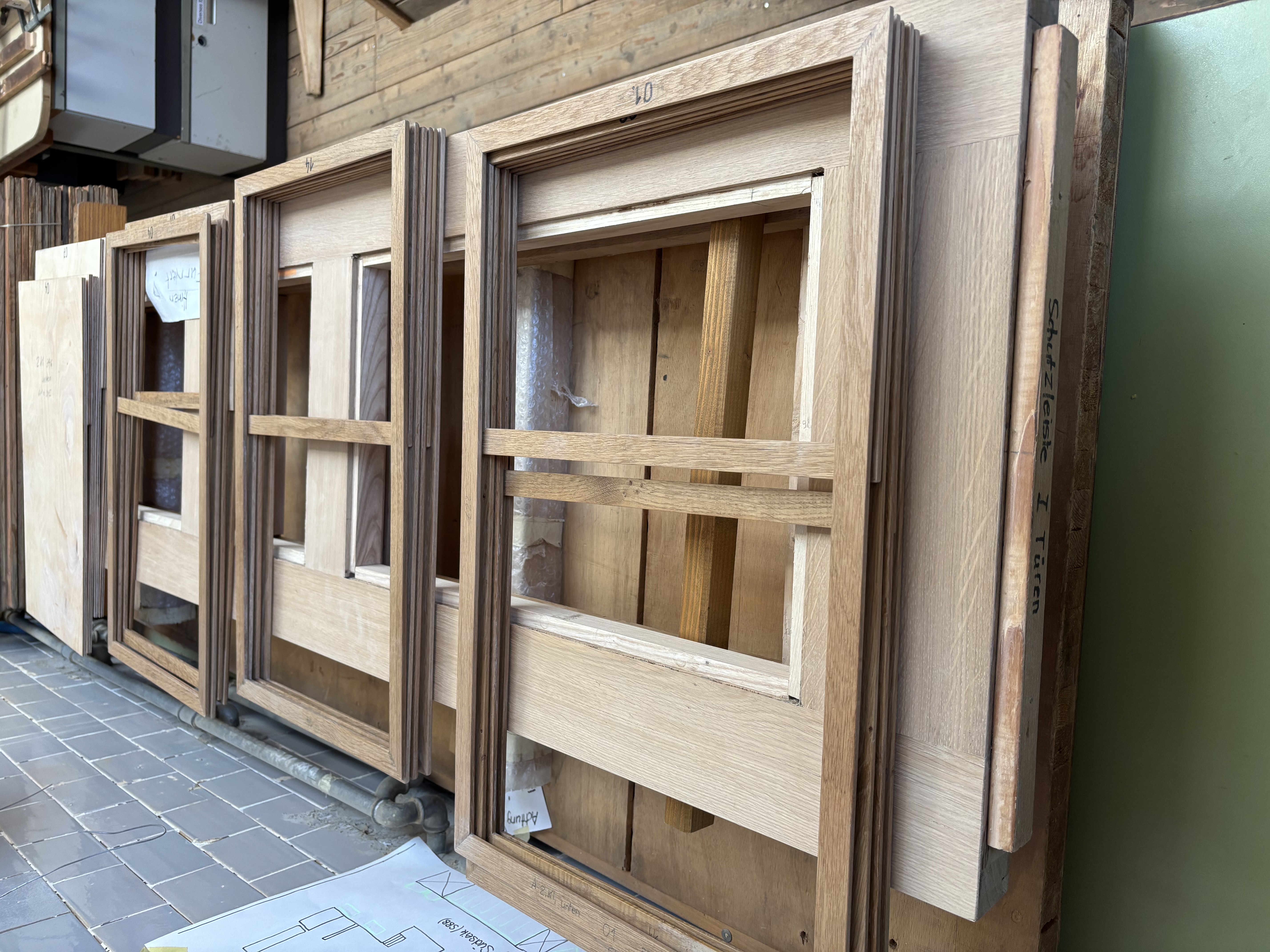 Die Plattform- und Abteiltüren sind furniert und im Rohbau abgeschlossen. Sonnenstoren, Innenwände, Fensterrahmen und weitere Innenbauteile wurden gefertigt und montiert. Die Sitzbänke der 2. Klasse sind lackiert, montiert und einbaubereit. Der Dachhimmel wurde montiert und verschraubt. Schutzfolien für die Fensterscheren sind vorbereitet, die Fensterscheren überarbeitet und bereit für die Endmontage mit den neuen Scheiben. Die ersten Sitze der 1. Klasse aus Nussbaumholz sind vorbereitet und warten temperaturbedingt auf den Zusammenbau.