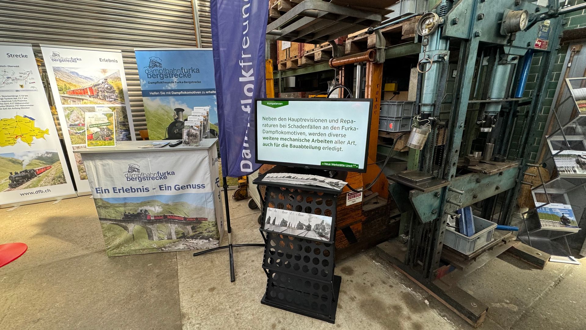 Die Dampflokfreunde genossen am diesjährigen Tag der offenen Wagenwerkstatt Gastrecht. Mit dem kleinen Werbestand wurde auf den Verein allgemein, insbesondere aber auf das Projekt "Neue Werkstätte Uzwil 2.0" aufmerksam gemacht.