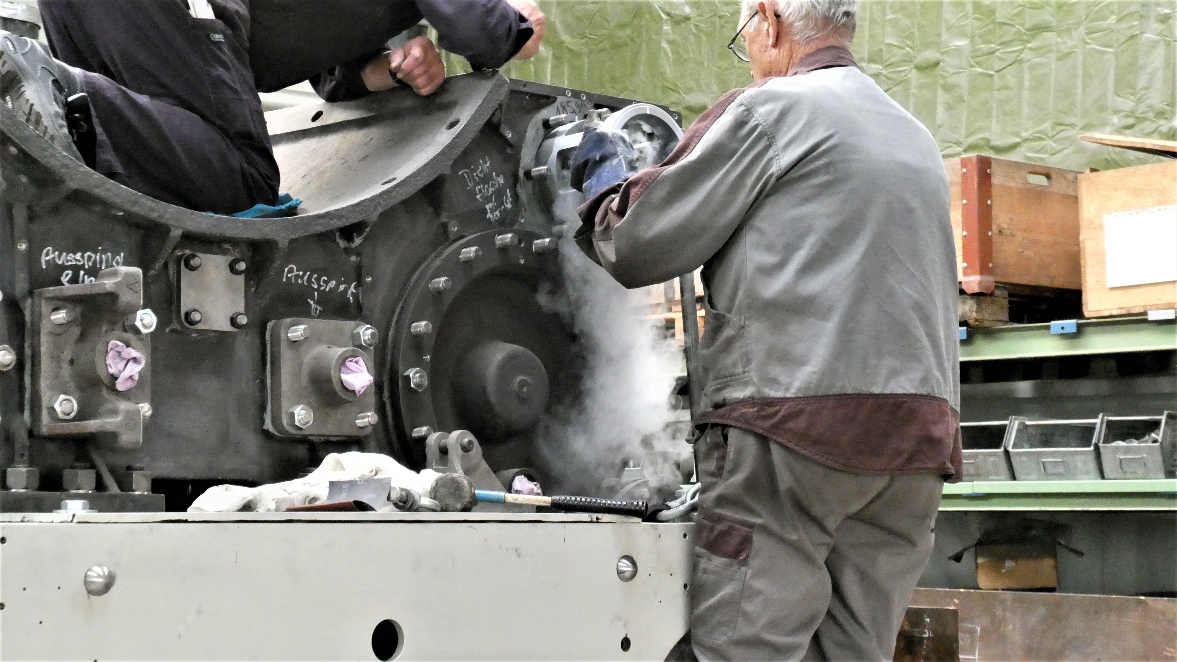 In der Dampflokwerkstätte Uzwil wird unter Einhaltung eines Schutzkonzeptes so intensiv wie möglich an der HG 4/4 Nr. 708 gearbeitet.