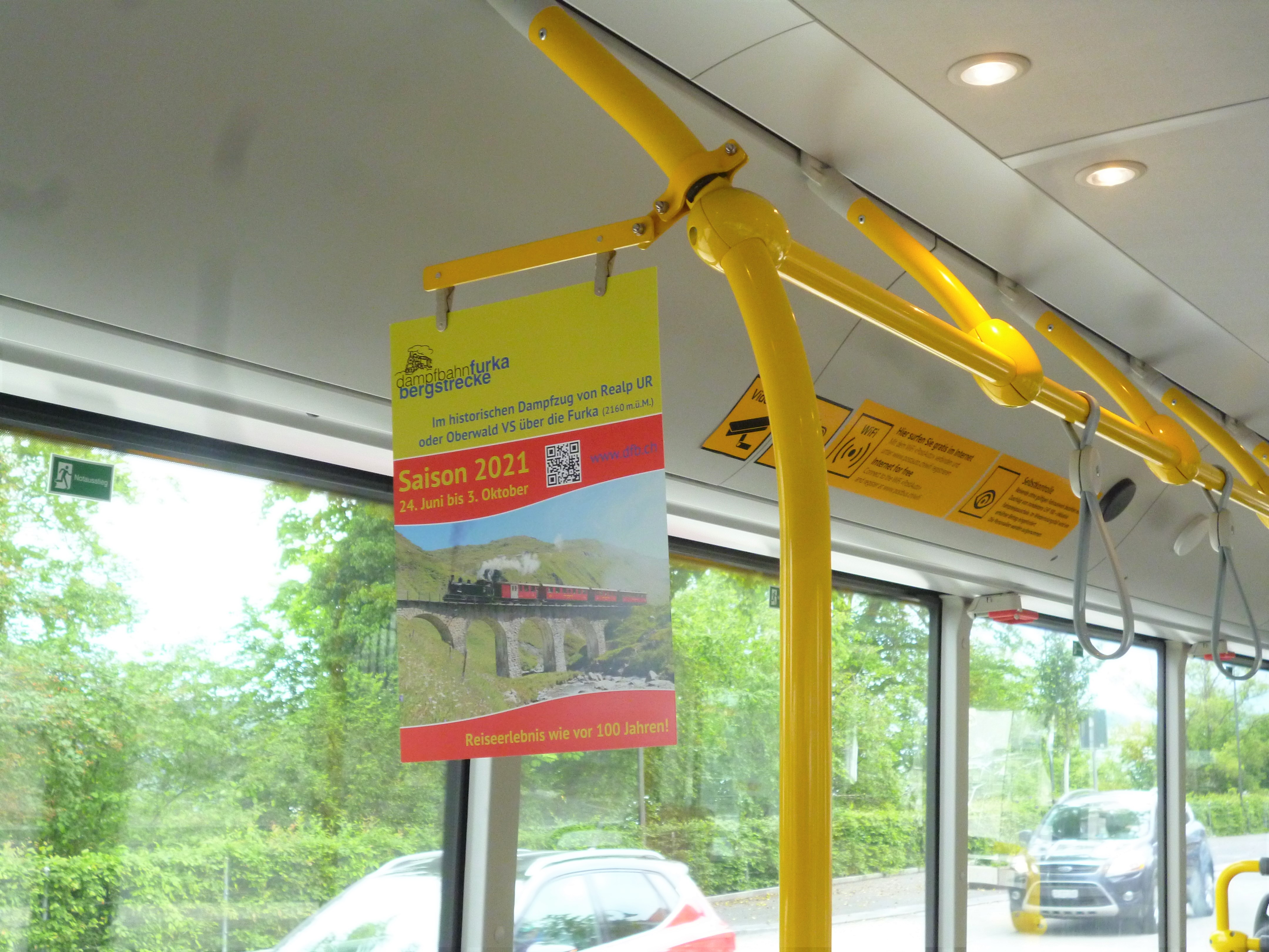 Die Aufgabe jeder VFB-Sektion ist es, im eigenen geographischen Gebiet Werbung für die Dampfbahn Furka-Bergstrecke zu betreiben. Aufgrund der im ersten Halbjahr 2021 nicht möglichen Auftritte an Messen und Ausstellungen hat der Vorstand nach alternativen Werbemöglichkeiten, die auch noch bezahlbar sind, gesucht. Im Juni hingen während vier Wochen in den Postautos in den Regionen St. Gallen und Wil Hängekartons (teilweise mit dem Fahrplan-Flyer) mit dem Hinweis auf die Saison 2021.