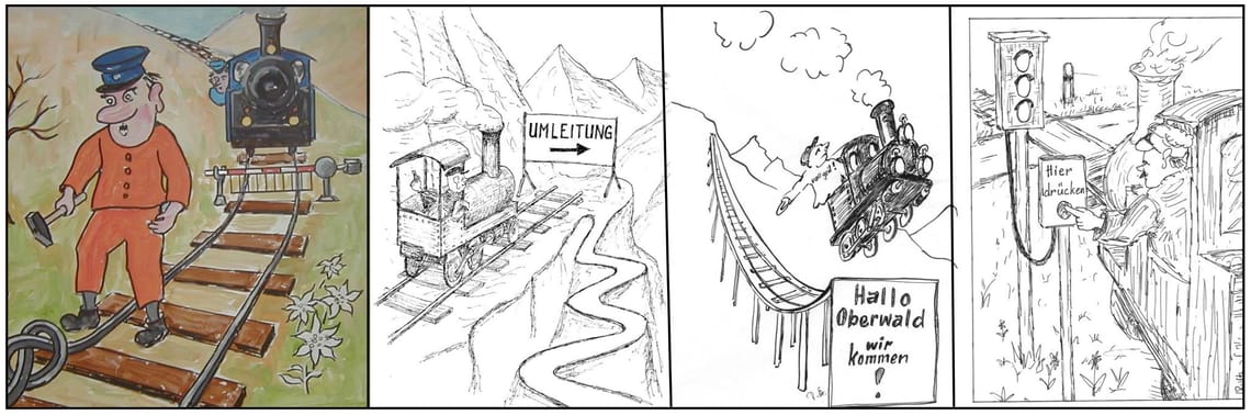 Unser Mitglied Ruedi Staiger hat über viele Jahre mit seinen ironischen Schmunzelecken unsere Sektionsnachrichten mit etwas Humor bereichert. Seine Zeichnungen spiegeln auch den Geist und die Geschichte der Dampfbahn Furka-Bergstrecke wider. Wir schätzen seinen Ideenreichtum und sein Zeichentalent. .